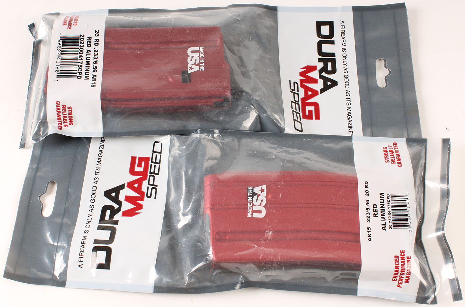 Lot of 2 Dura Mag AR15 red Aluminum, .223/5.56 20 rd mag. Grade: Excellent - Value: 10 to 40