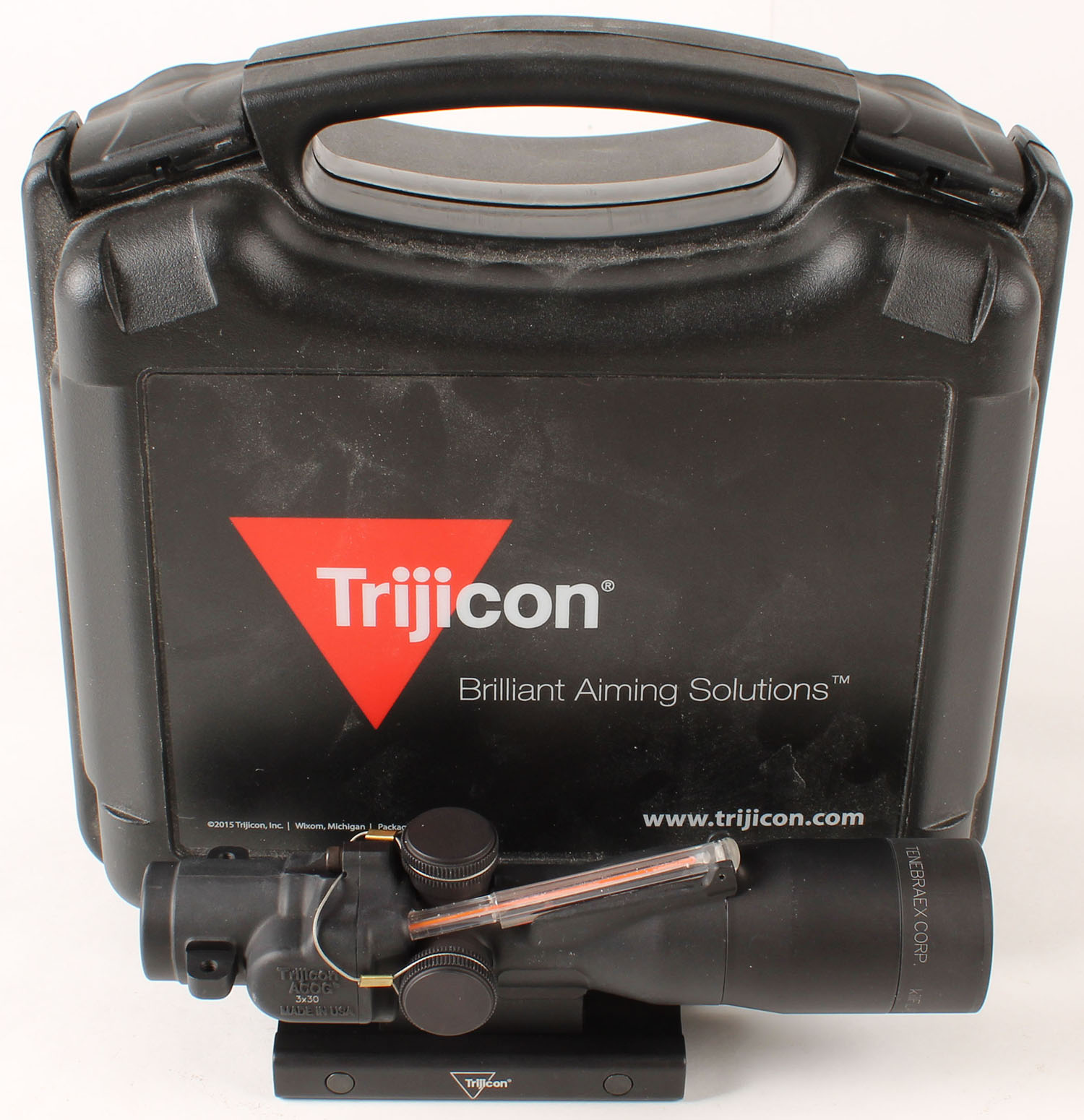 Trijicon 3x30 compact Acog scope, Dual illuminated red horseshoe, dot 7.62x39/123 gr. Ballistic reticle with colt knob thumbscrew mount, in case, similar one on their website is $1550. Grade :Excellent ++ - Value: 500 to 1500