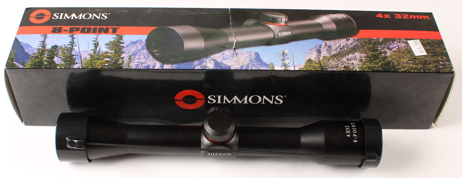 Simmons 8 point rifle scope, in box, 4x32mm. Grade: Excellent ++ - Value: 40 to 80