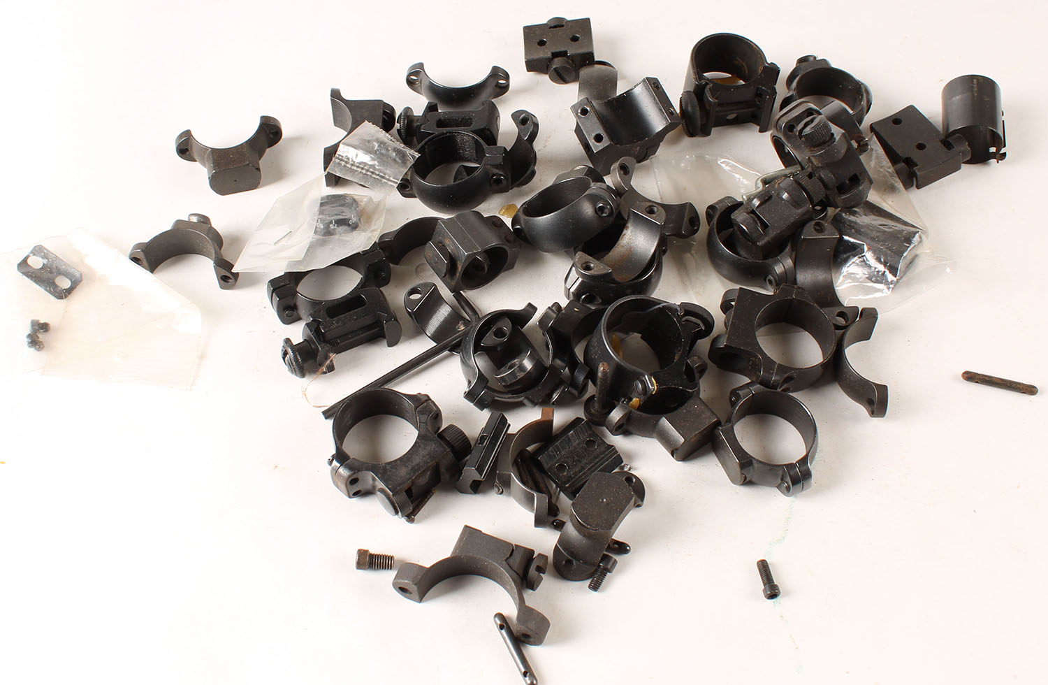 Large lot of ring scope mounts and other misc parts . Grade: Very Good ++ - Value: 10 to 50