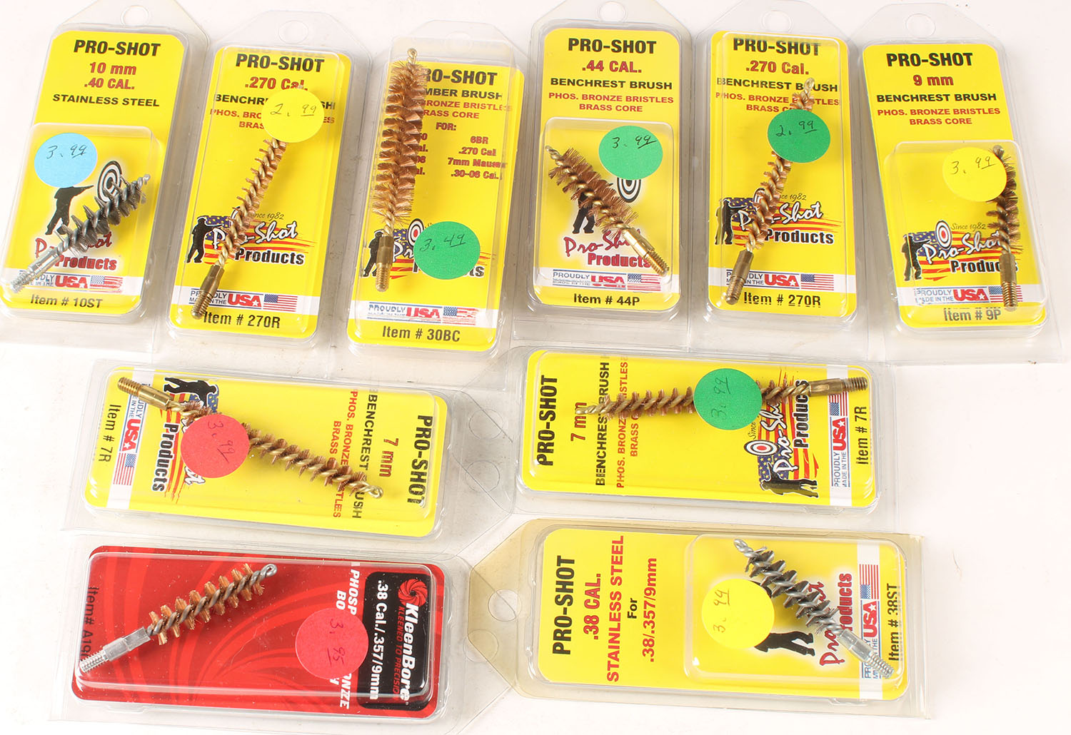 Lot of brand new gun cleaning brushing. Grade: MINT - Value: 10 to 40