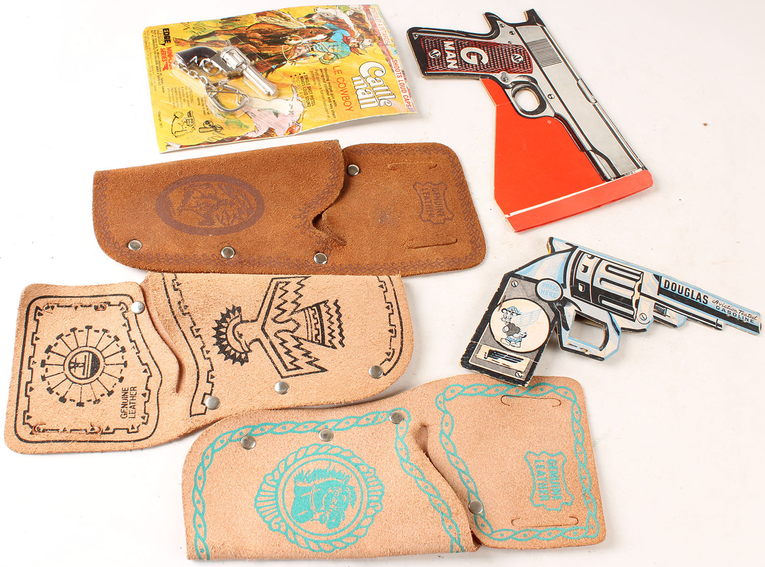 Cap Gun advertisements & leather holsters. Grade: Excellent - Value: 20 to 200