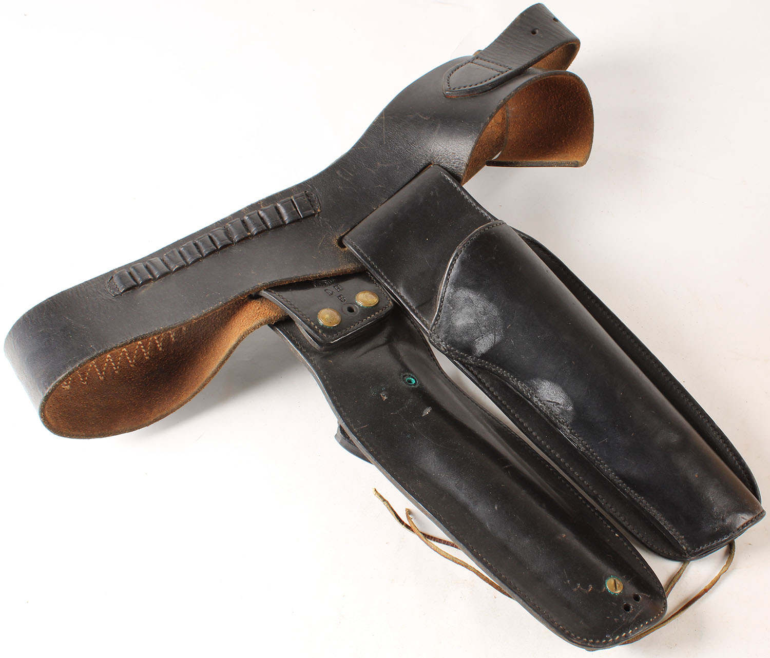 Hunter leather ammo belt with dual holsters, 38'' waist. Grade: Excellent - Value: 20 to 100