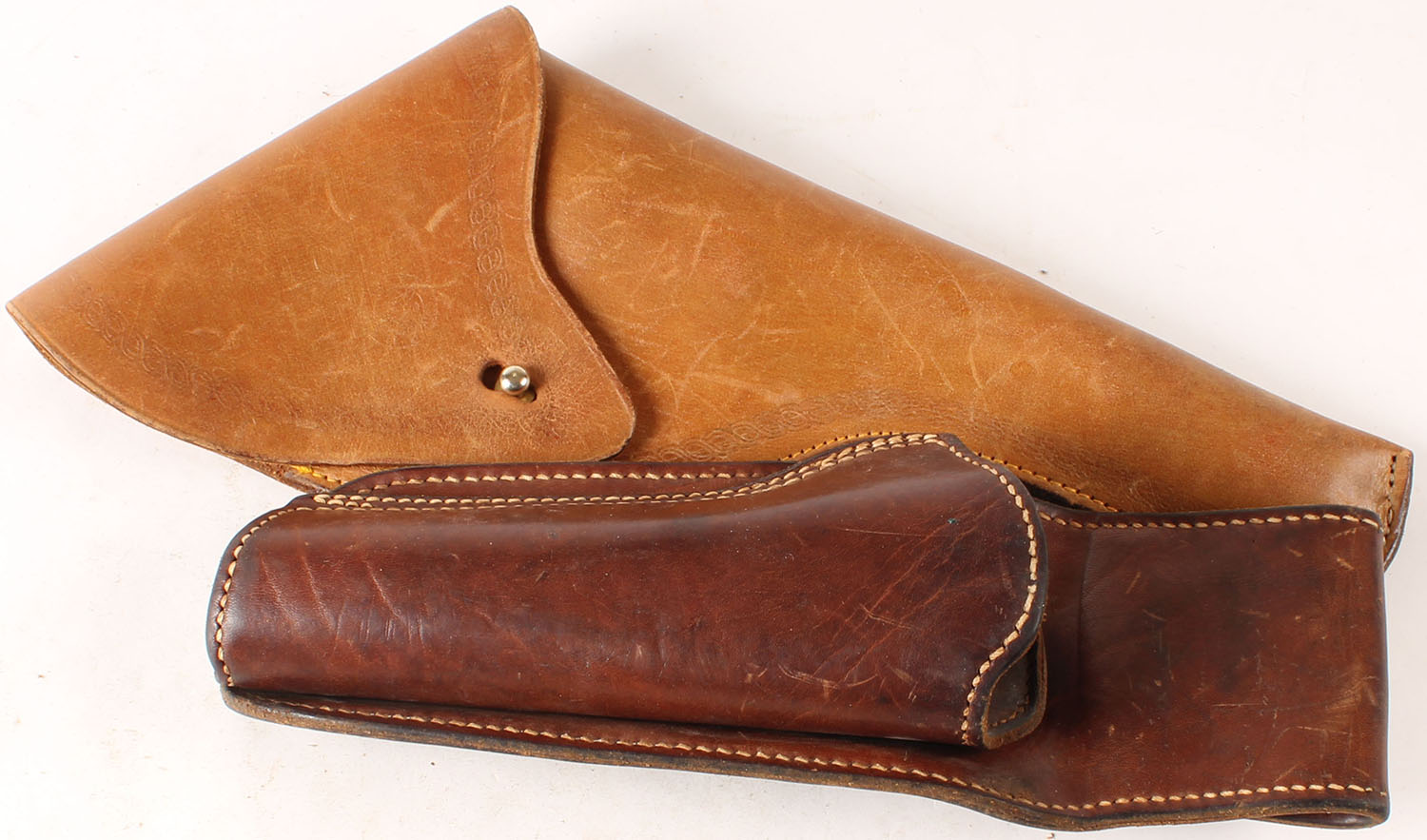 Lot of 2 leather holsters, one is marked Hunter. Grade: Excellent - Value: 20 to 100
