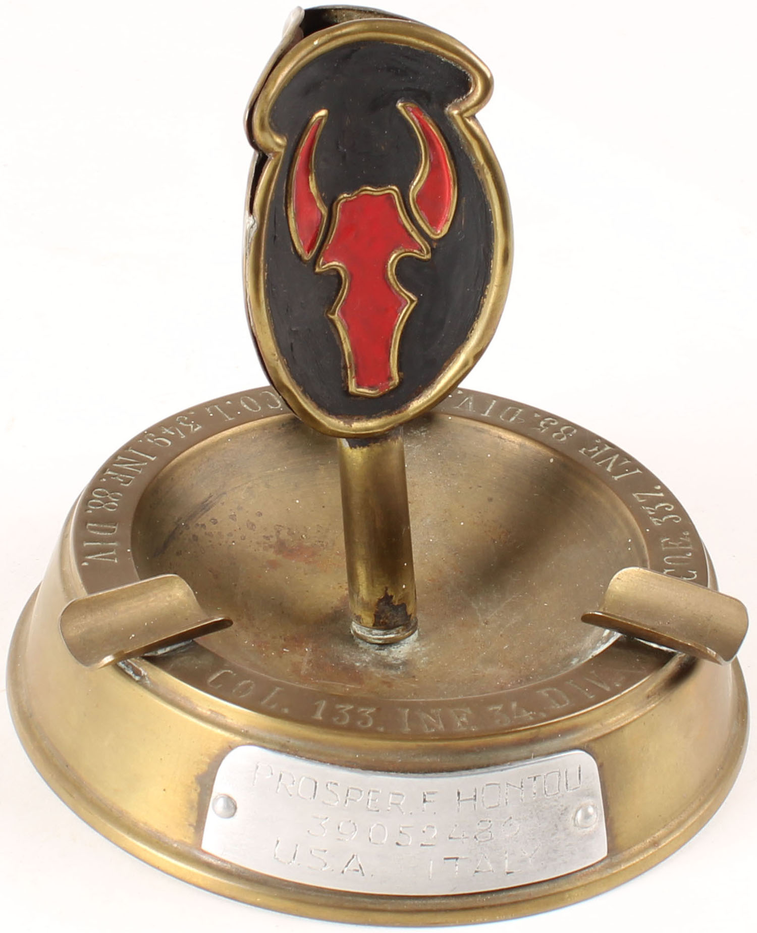 Trench Art Ash Tray, marked with three different div. on it. Grade: Excellent - Value: 10 to 50