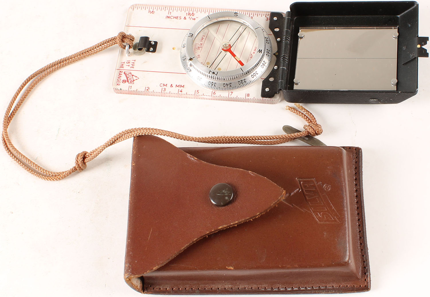 Silva Compass with mirror & leather case. Grade: Excellent - Value: 6 to 30
