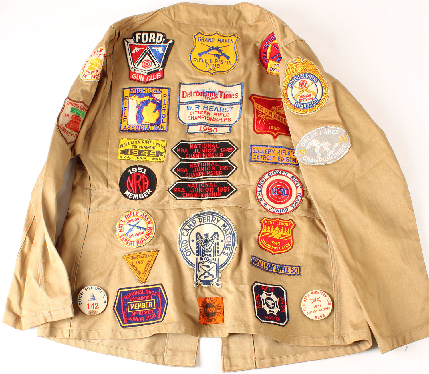 1950's shooting jacket with many patches from the Great Lake area. Grade: Excellent - Value: 10 to 50