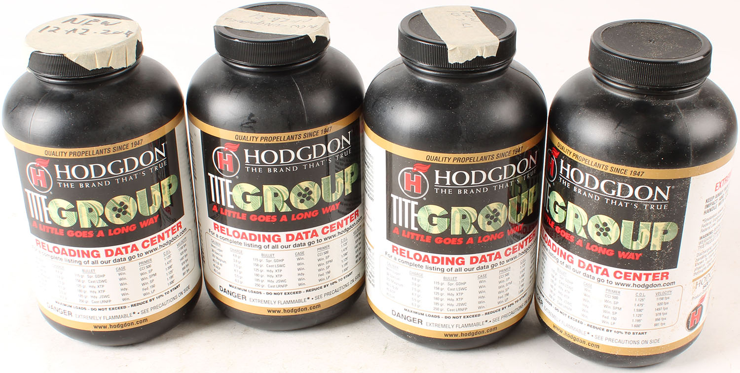 Hodgdon, Lot of (4) 1lb bottles of Pistol Powder, Smokeless Powder, all bottles are full or mostly full. Grade: Excellent - Value: 20 to 100