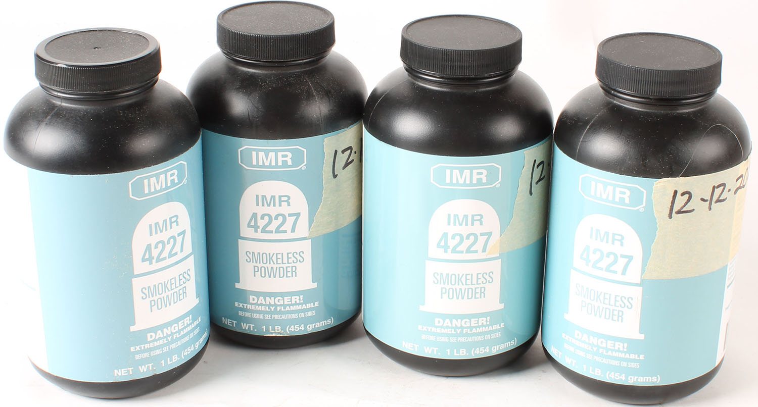 IMR, Lot of (4) 1lb bottles of IMR 4227 Smokeless Powder, all bottles are full or mostly full. Grade: Excellent - Value: 20 to 100
