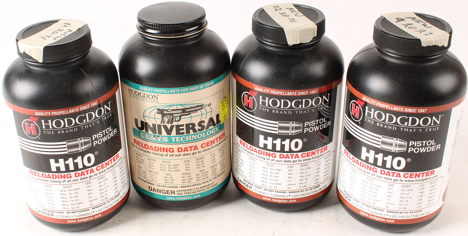 Hodgdon, Lot of (4) 1lb bottles of H110r, Smokeless Powder, all bottles are full or mostly full. Grade: Excellent - Value: 20 to 100